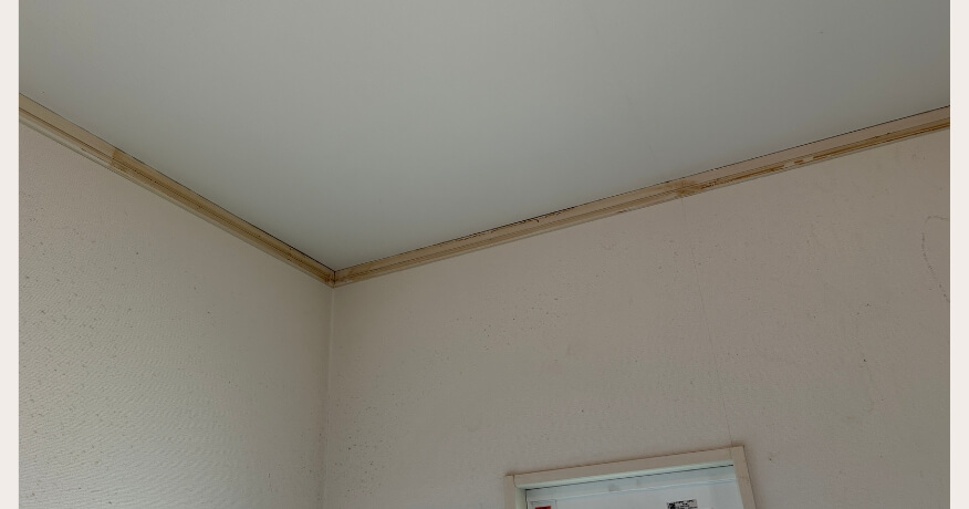今回の調査では、階段室の天井と壁の境い目に