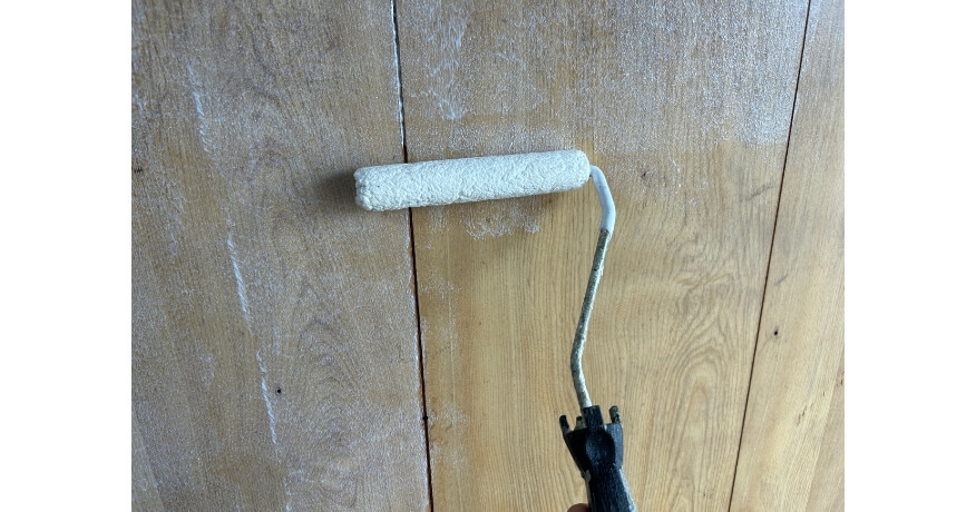 ローラーで全体を均一に塗布。乾燥後は透明になり、触るとやや粘着感が出ます。