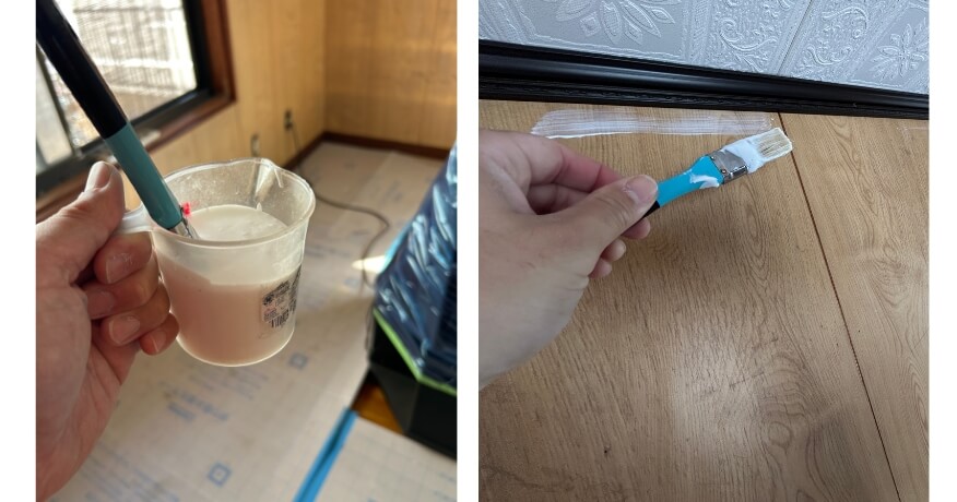 原液を刷毛で丁寧に塗り、ムラにならないよう薄く均等に塗布します。